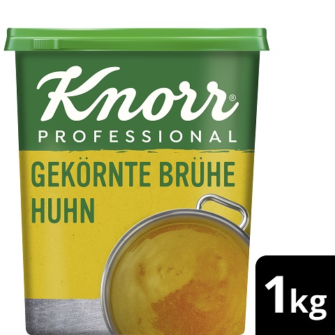 KNORR Gekörnte Brühe Huhn ist eine sofort lösliche, besonders würzig schmeckende Hühnerbrühe ohne Suppengrün.